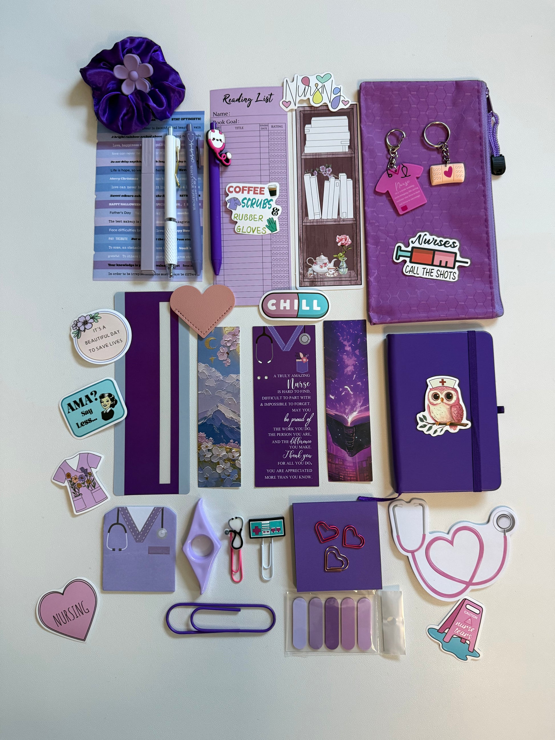 Designed for hardworking nurses, the Scrubs & Scribbles bundle is full of creative, themed goodies to help you unwind, journal, and add a little fun to your day. Choose one preferred color or two colors for a mixed bundle, and your Scrubs & Scribbles bundle will be designed around your selection.
